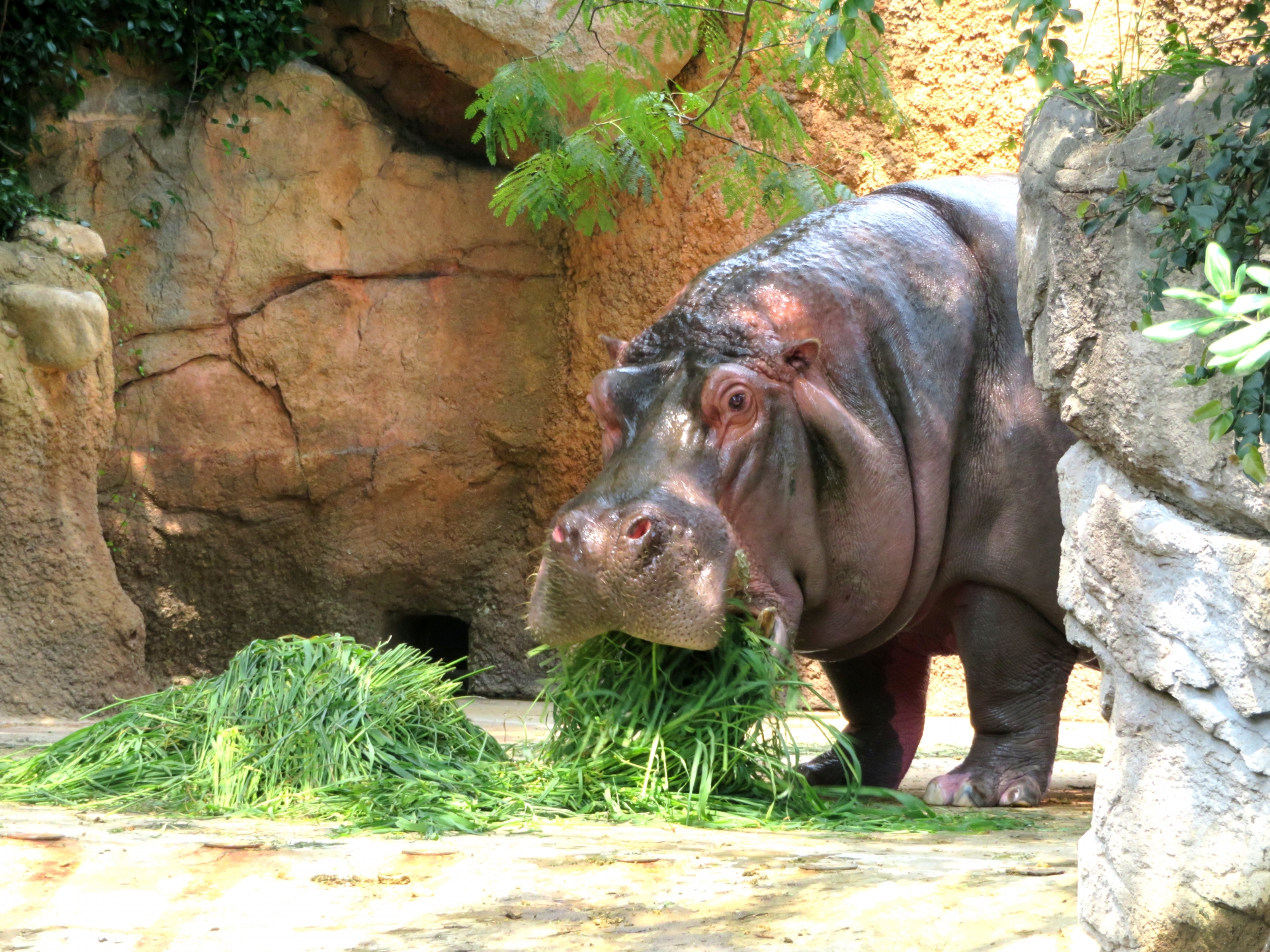 東山動植物園では、カバがエサを食べる姿を見ることができます。